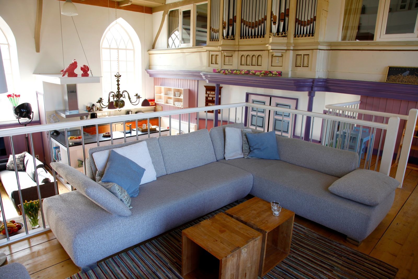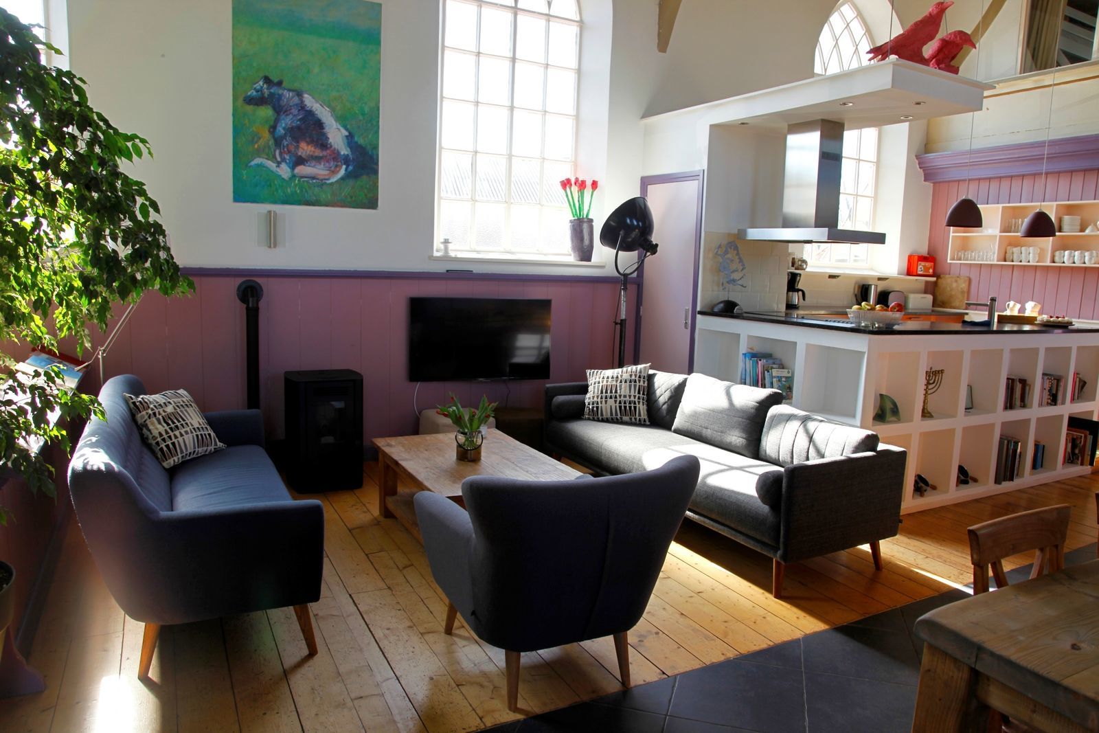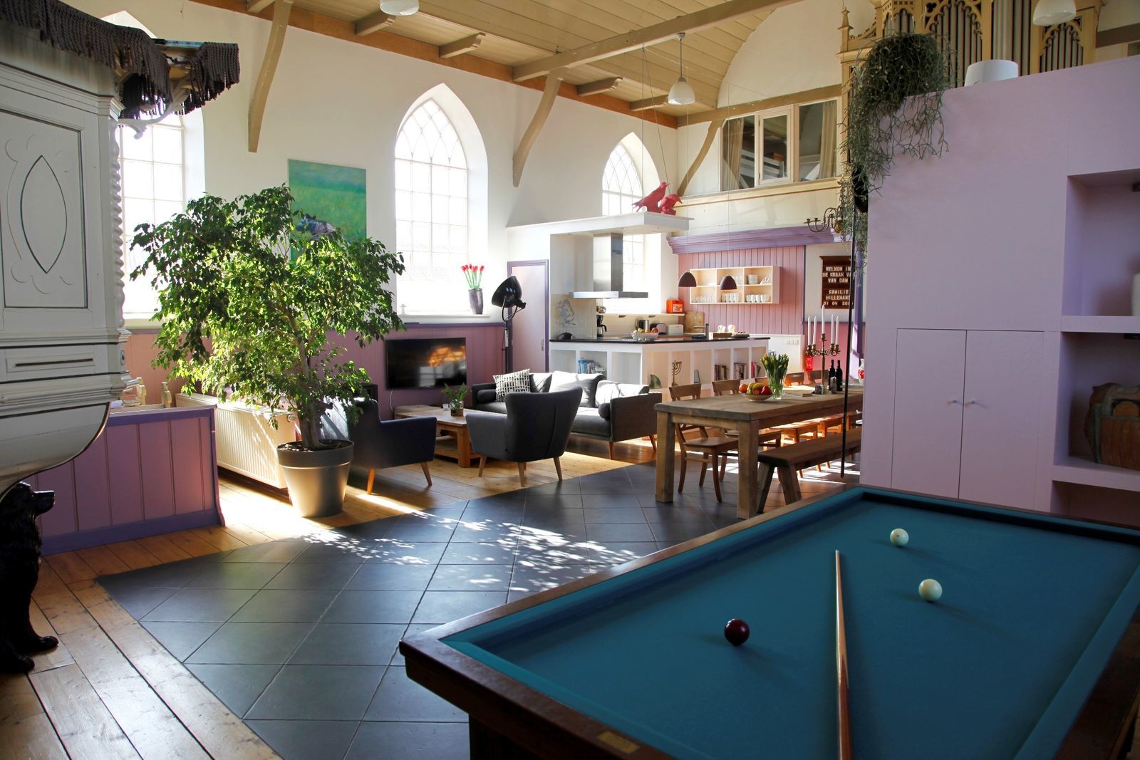 De Dorpskerk in Friesland is is omgetoverd tot een subliem vakantiehuis. Het orgel, de preekstoel, de kerkbankjes en hoge plafonds geven het kerkje de allure van toen. En er zijn nog zoveel leuke andere details te ontdekken! Met hedendaags comfort, een warme en kleurrijke inrichting in combinatie met originele kunstwerken van Friese kunstenaars oogt het huiselijk en vertrouwd. ’s Ochtends haalt u verse eitjes uit het kippenhok en voor de rest geniet u van de heerlijke tuin of speelt u een spelletje biljart.