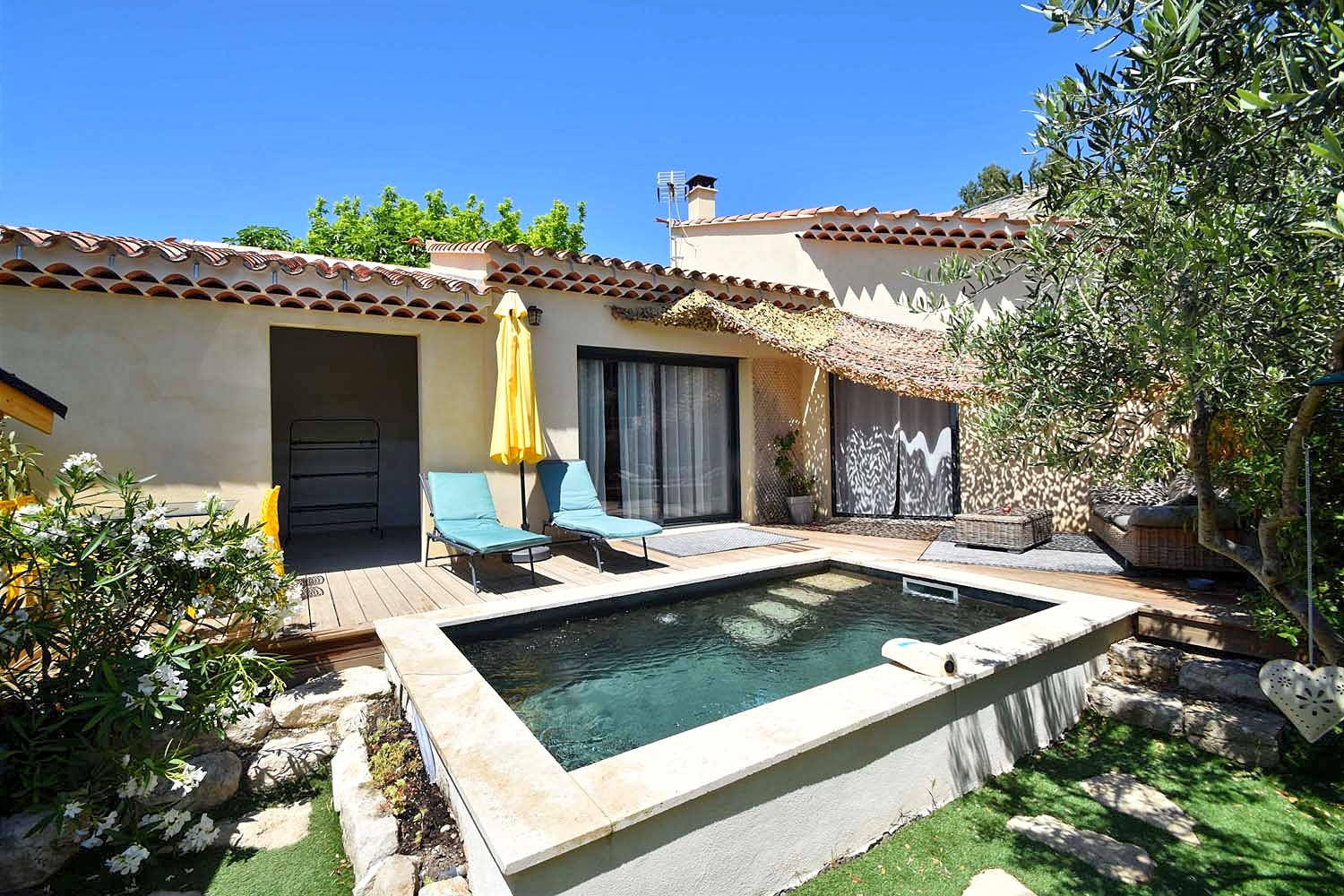 Vakantiehuis met privé zwembad in het pittoreske dorp Méthamis. Het dorpshuis is smaakvol ingericht en van alle gemakken voorzien, er is zelfs een authentieke jukebox! Bij het zwembad en op het terras is het heerlijk toeven. Het zwembad is klein, maar er bestaat de mogelijkheid om tegen een krachtige stroom in te zwemmen, de filtering werkt met de elektrolyse van zout, aangenaam voor de huid. Het Provençaalse dorp ligt aan de rand van de Gorges de la Nesque in een prachtige omgeving met wijngaarden, olijfbomen, bossen en lavendelvelden. In het dorp is een café en er is een kruidenier. In Villes-sur-Auzon (6,5 km) zijn enkele restaurants, een bakker en een kruidenier. Alle overige voorzieningen, waaronder een supermarkt, vindt u in Mazan (12 km). Vanuit het huis zijn er meteen uitstekende fiets- en wandelmogelijkheden. Voor geoefende fietsers is het gebied een eldorado: de Gorges de la Nesque, de Col de Murs en uiteraard de tot de verbeelding sprekende Mont-Ventoux liggen in de directe omgeving. Bédoin is voor veel fietsers het startpunt van de beklimming van de “kale berg” (15 km). Er zijn verder heel wat uitstapjes te maken: de antiekmarkt in L’Isle-sur-la-Sorgue, de bron van de Sorgue in Fontaine-de-Vaucluse, het Pausenpaleis in Avignon, de lavendelvelden rond het hooggelegen Sault, de zaterdagmarkt in Apt, Gordes en Roussillon……zo maar een greep uit de talloze mogelijkheden die deze prachtige omgeving biedt.