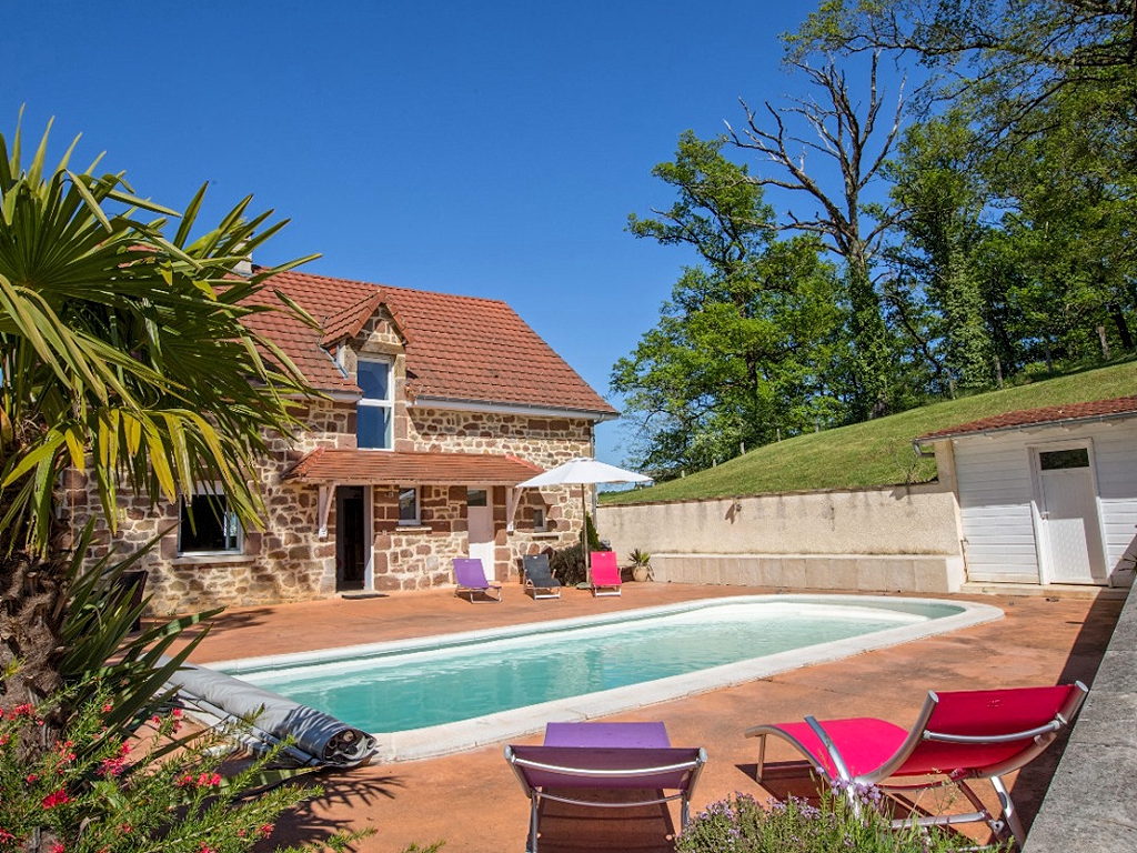 Geheel vrijstaand vakantiehuis met privé zwembad en mooie tuin, gelegen bij Saint-Pantaléon-de-Larche, 10 km ten westen van de stad Brive. Het modern en comfortabel ingerichte vakantiehuis is zeer rustig gelegen en u heeft er een prachtig uitzicht over de omliggende heuvels. De ligging op de grens van de departementen Corrèze en Dordogne maakt het mogelijk beide gebieden te verkennen; de natuur en de rust van de Corrèze met karakteristieke dorpen als Turenne, Collonges-la-Rouge en Curemonte naast de vele bezienswaardigheden van de Dordogne, zoals de imposante kastelen, de grotten van Lascaux (28 km) en het bekende Sarlat (45 km). In de nabije omgeving zijn ook het aan de rivier de Vézère gelegen stadje Terrasson-Villedieu (12 km) en de stad Brive een bezoek waard. In de streek kunt u wandelen, fietsen, kanovaren op de Vézère en paardrijden. In St.Pantaléon-de-Larche vindt u de meeste basisvoorzieningen, in Larche (6 km) en Brive (10 km) zijn alle overige voorzieningen. Op 7 km is een groot recreatiemeer, het Lac de Chasteaux (ook wel Lac de Causse genoemd) en bij Brive (10 km) is een golfbaan.