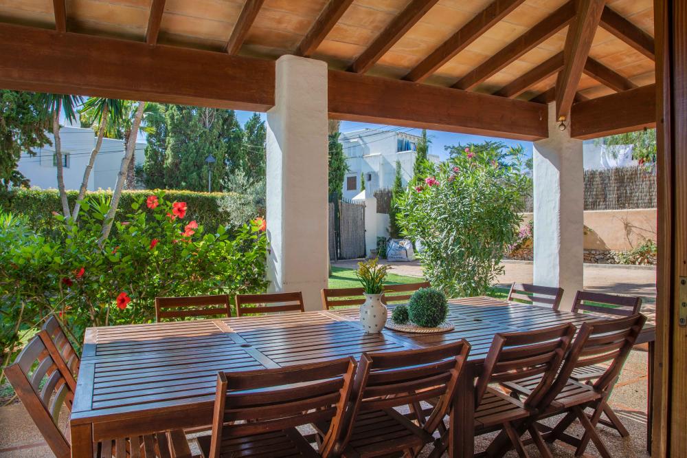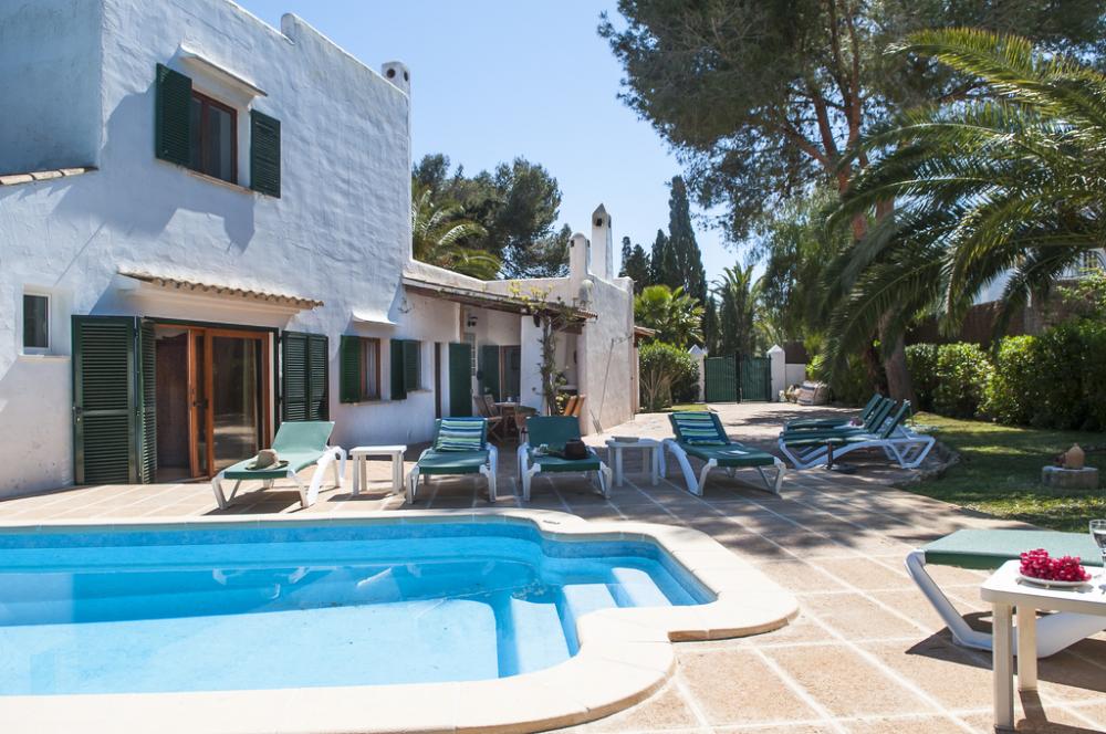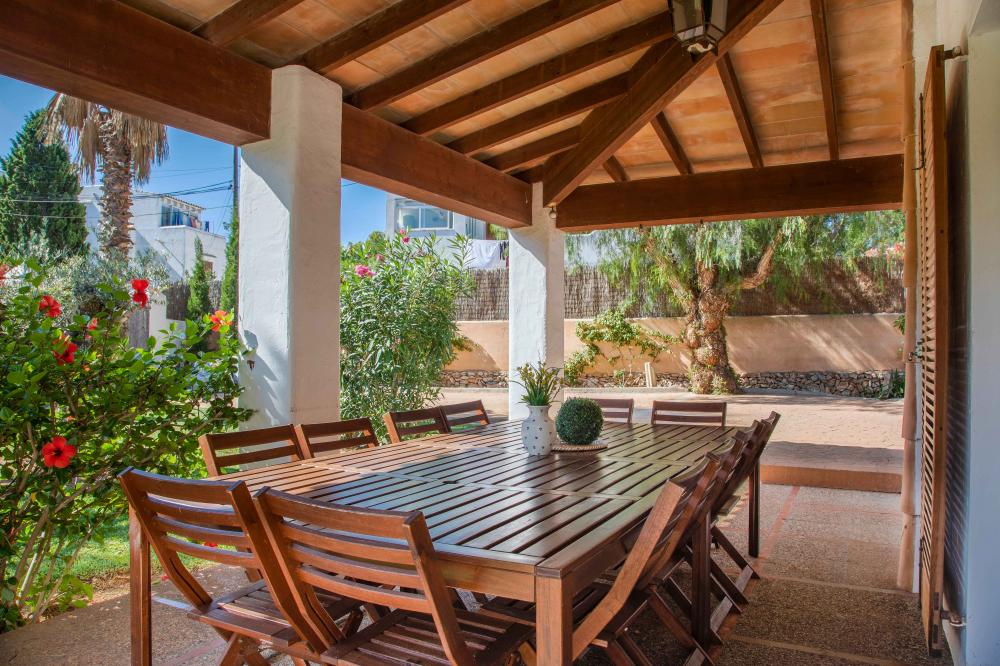 Villa Cala Ferrera is een charmante Ibiza stijl villa met een mooie combinatie van antiek en modern. Het heeft een goed onderhouden volgroeide tuin en veel buitenruimte.De begane grond biedt een open woon- / eetkamer vol van karakter, met toegang tot het overdekte terras aan de voorzijde en het terras aan de zijkant.. De keuken die goed is uitgerust heeft ook toegang tot het terras aan de kant van het zwembad.