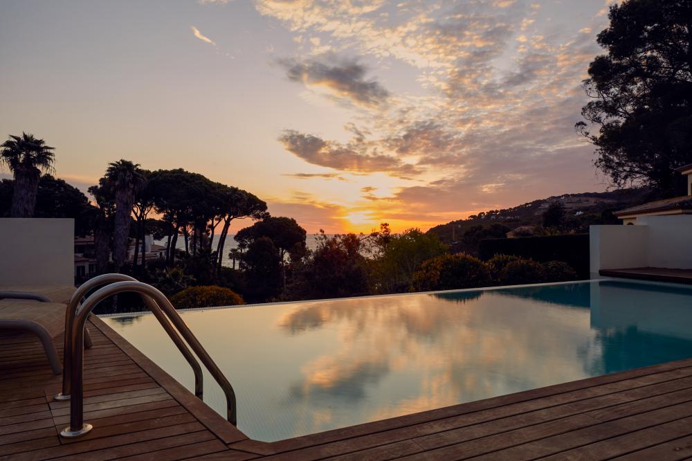 Prachtig modern vakantiehuis met privé zwembad, op loopafstand van het strand van Sa Riera. Geschikt voor 5 personen, met internet en uitzicht op zee.U komt de villa binnen op de bovenste verdieping, waar u een hal vindt die toegang geeft tot drie slaapkamers. De master slaapkamer met tweepersoonsbed (200×200) heeft een badkamer ensuite met douche en bad. Vanuit deze slaapkamer bieden schuifdeuren toegang tot een privé terras met buiten meubelen, er kan hier van een spectaculair uitzicht op zee worden genoten. De andere twee slaapkamers, beide met een tweepersoonsbed (150×200 en 120×200), delen een andere badkamer met douche. Alle slaapkamers hebben grote ramen met zeezicht.Een trap naar beneden brengt u in een lichte en ruime woonkamer met tv. Vanuit de woonkamer heeft u toegang tot het terras met buitenmeubelen voor een al fresco diner en ook is er een gasbarbecue. Naast de woonkamer is de moderne keuken, uitgerust met alle benodigdheden, zoals koelkast/vriezer, oven, magnetron, afwasmachine, koffiezetapparaat enz. De eettafel naast de keuken heeft ook zeezicht. Op deze verdieping is er ook een apart toilet.Een extra slaapkamer met slaapbank en een eigen badkamer met douche vindt u op dezelfde verdieping. Buiten op deze verdieping is er een wasruimte met wasmachine en droger.Een niveau lager is het prive zwembad. Er is ook een complete badkamer met douche op dit niveau. Ligbedden zijn ook beschikbaar. Nog een niveau lager is de grote tuin compleet met gras. Vanuit de tuin kan een deur worden geopend naar een pad dat direct naar het strans van Sa Riera leidt.Er is een privé parkeerplaats langs de weg, geschikt voor twee kleine auto’s of een grote auto.