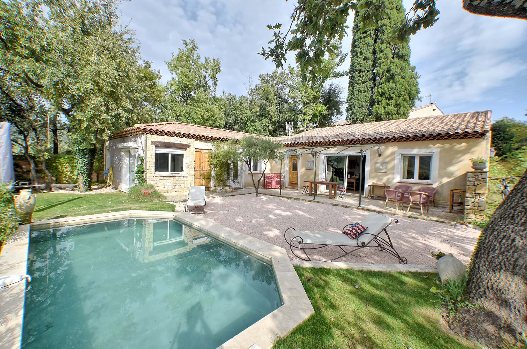 Prachtig gelegen vrijstaand vakantiehuis met privé zwembad bij het dorp La Roquebrussanne. Het huis is gelegen op een heuvel en u heeft er een prachtig uitzicht over de vallei en op de bergen van La Sainte-Baume. Het centrum van het Provençaalse dorpje ligt op ca.600 m, u kunt er terecht voor alle voorzieningen waaronder een café en een restaurant. De grotere supermarkten vindt u bij Garéoult en Rocbaron. La Roquebrussanne ligt ten zuiden van de levendige stadjes Brignoles en Saint-Maximin-la-Sainte-Baume. Het huis heeft een royale woonkamer en de drie slaapkamers zijn gegroepeerd rondom de centraal gelegen badkamer. Elke slaapkamers heeft een toegang tot deze badkamer. Slaapkamer 3 is bereikbaar via één van de andere slaapkamers en de badkamer. Ook is het mogelijk deze slaapkamer (met eigen wastafel en toilet) buitenom te bereiken. In de omgeving vindt u vele wandelmogelijkheden, zowel bij de Montagne de la Loube als in het ruige Massif de la Sainte-Baume. De bezienswaardige steden Aix- en-Provence, Toulon en Marseille zijn zeker een bezoek waard, evenals de karakteristieke dorpjes in de omgeving als Tourves, Néoules, Belgentier en Forcalqueiret. Aan de kust liggen fraaie badplaatsen als Hyères, Bandol, Sanary, La Ciotat en Cassis met zijn schitterende ”calanques”. Via de snelweg is de Franse Rivièra met der mondaine badplaatsen Nice, Cannes en Antibes eveneens gemakkelijk te bereiken. Een bezoek aan de befaamde canyons van de Gorges du Verdon mag natuurlijk niet op het programma ontbreken. Er is een golfbaan bij Nans-les-Pins op ca. 25 km.