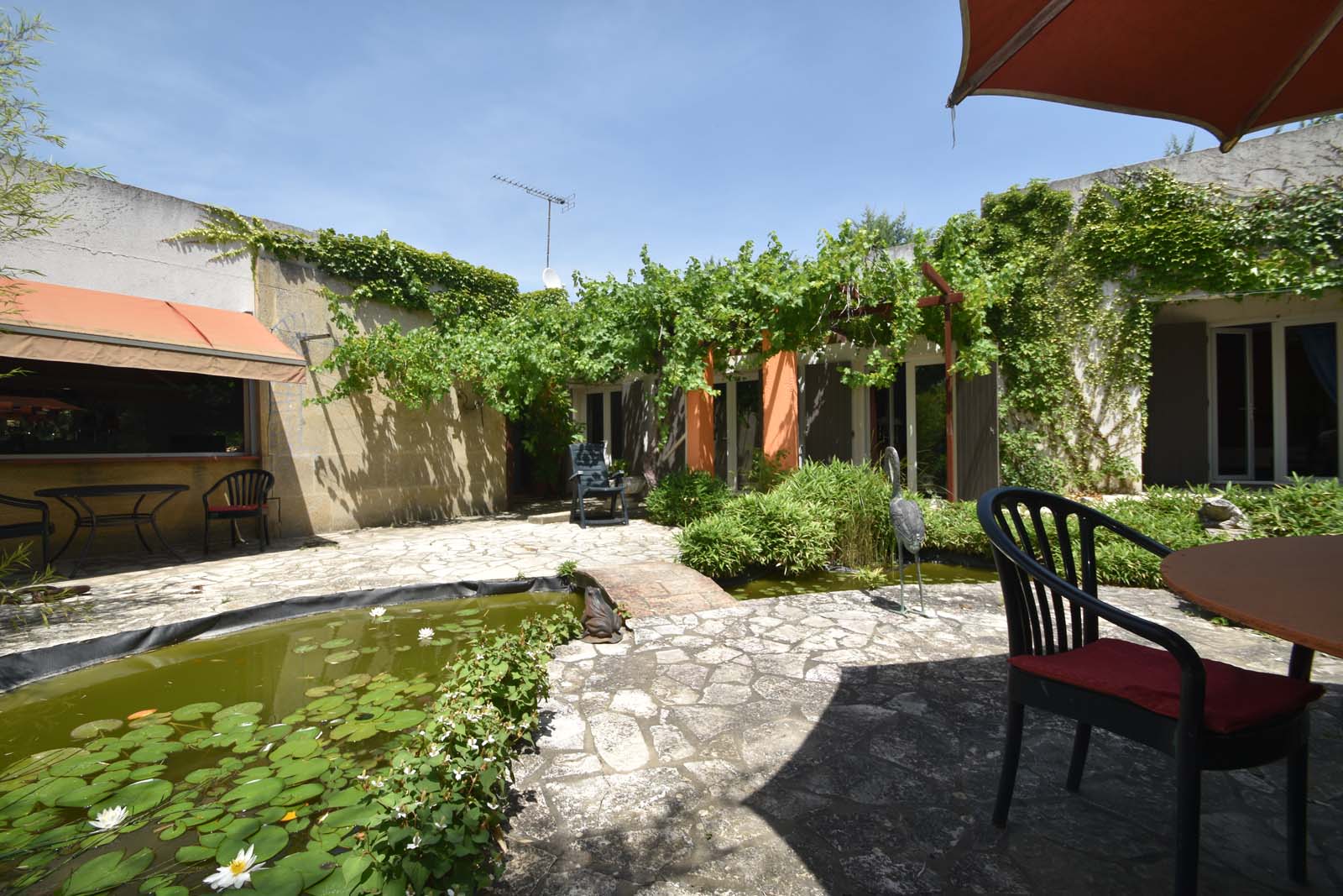Geheel vrijstaand vakantiehuis met jacuzzi aan de rand van het pittoreske dorpje Saint Dionisy, 12 km ten westen van Nîmes en 35 km van de Middellandse Zee. Het comfortabel ingerichte huis heeft een mooi aangelegde, schaduwrijke tuin waar het goed toeven is. Op loopafstand is een café/restaurant en een supermarkt. Alle verdere voorzieningen vindt u in het dorp Calvisson (5 km), in Nîmes en in Sommières. Saint-Dionisy is ideaal gelegen voor het verkennen van deze afwisselende streek. Zowel liefhebbers van natuur, cultuur als van strandvertier komen hier aan hun trekken. In de heuvels in de omgeving van het huis kunt u wandelingen maken in de ruige natuur, in de “garrigue”. Met kinderen is het leuk om een parcours te lopen om bories te vinden, eeuwenoude natuurstenen hutjes. En ook het ongerepte berggebied van de Cevennen met karakteristieke plaatsjes als Sauve, Saint-Hippolyte-du-Fort en Anduze is niet ver. De bezienswaardige stad Nîmes ligt op slechts 12 km, u vindt er goed bewaarde overblijfselen uit de Romeinde tijd, zoals de arena en het Maison Carrée, een magnifieke tempel. Ook een bezoek aan de beroemde Pont du Gard bij Uzès is de moeite waard. Een dagje naar de Middellandse Zee is vanuit uw vakantiehuis heel goed te doen. De brede zandstranden van La Grande Motte liggen op 35 km. N.B. in de tuin is een visvijver, let op met kleine kinderen !!